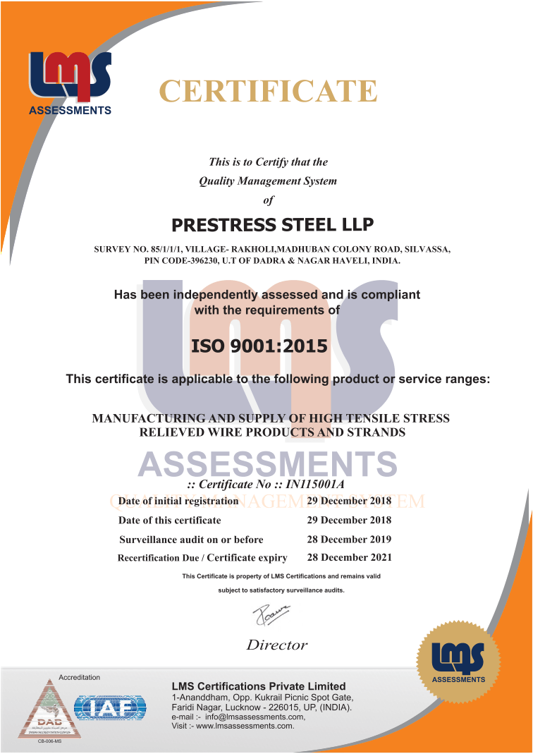 Prestress Steel LLP (Formerly Known as Prestress Wire Industries) started our business in 1994 at Silvassa , is a pioneer in manufacturing of HTGS wire and Prestressed Concrete Wires.We are a proud member of the GITA group which has diversified business across India at 30 locations.